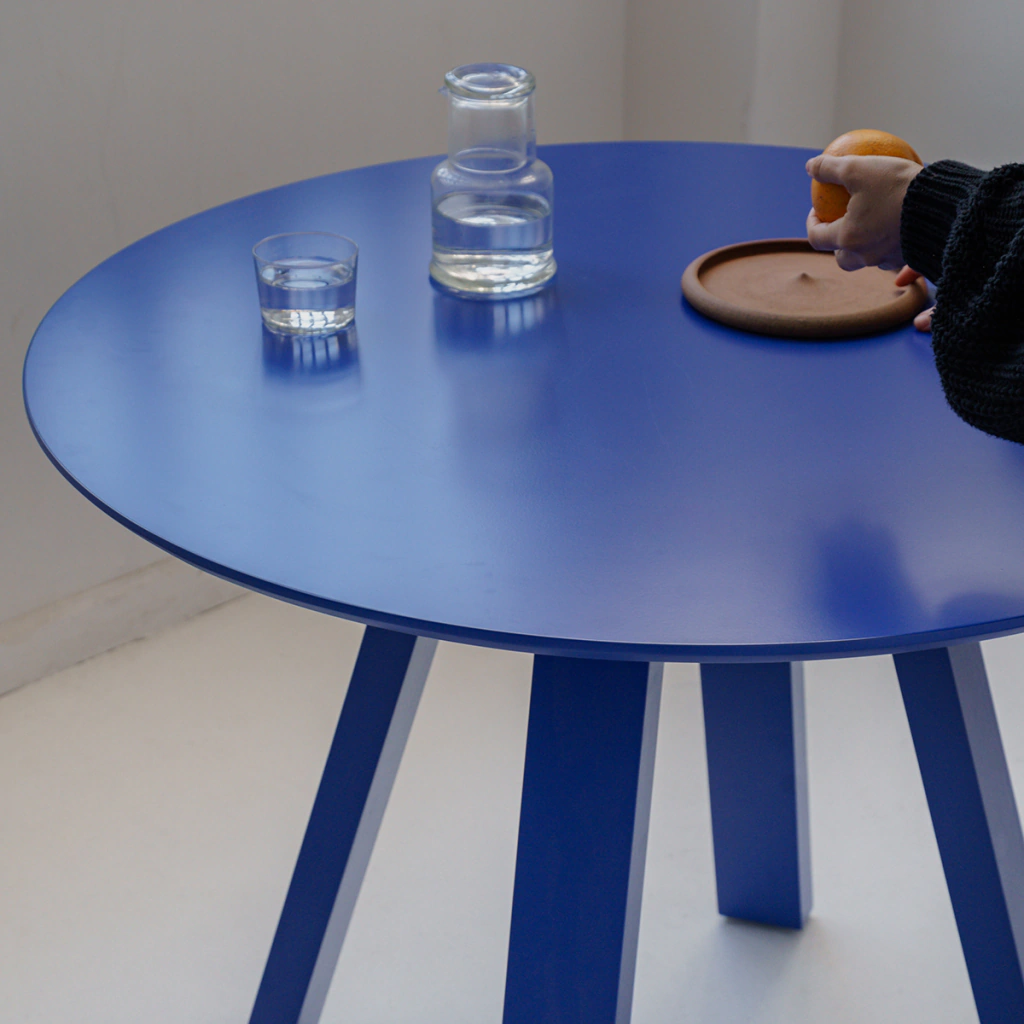 Material tapa. laqueado poliuretánico azul semi mate.